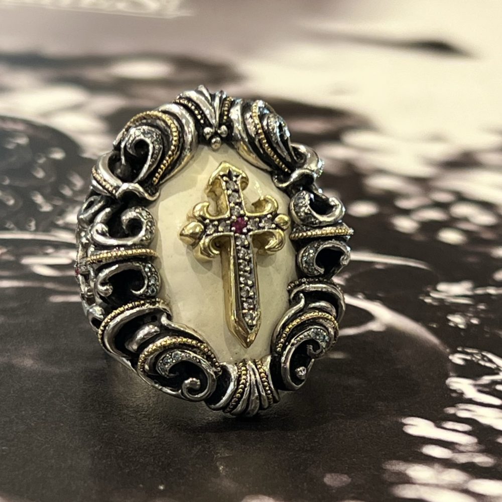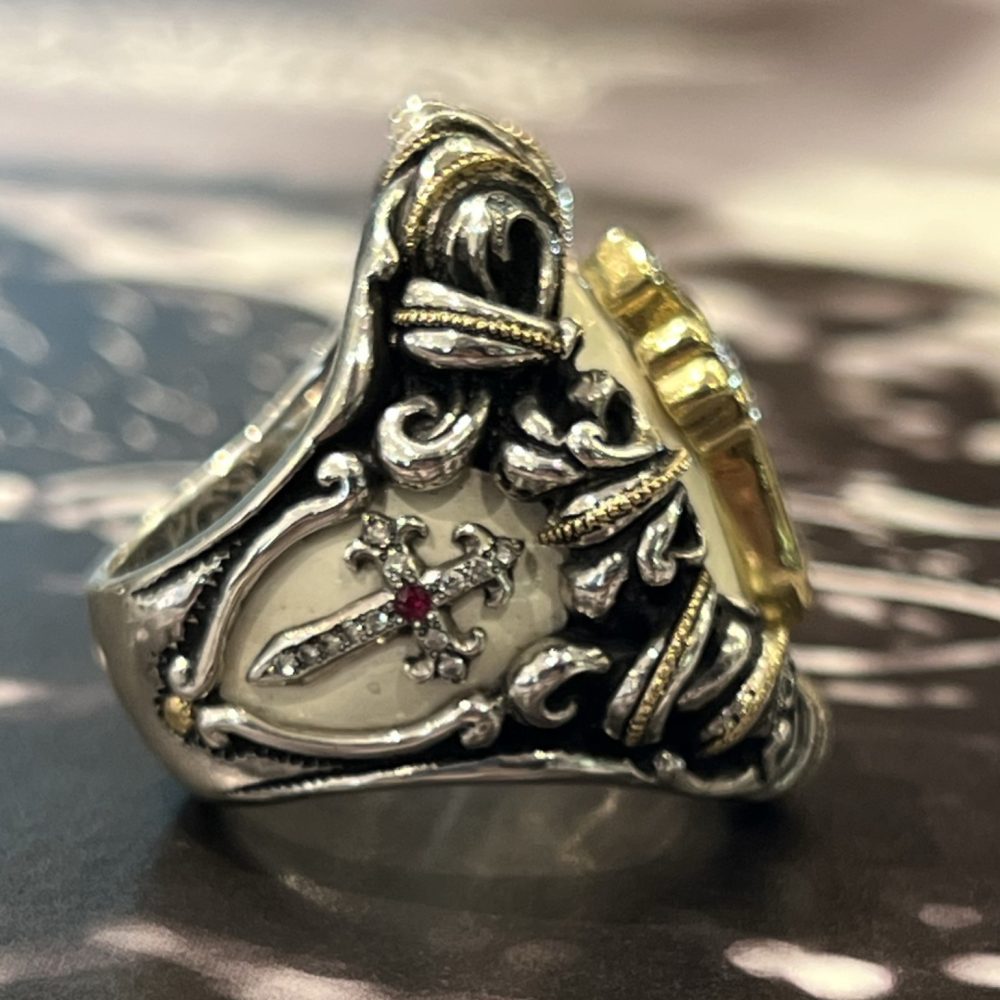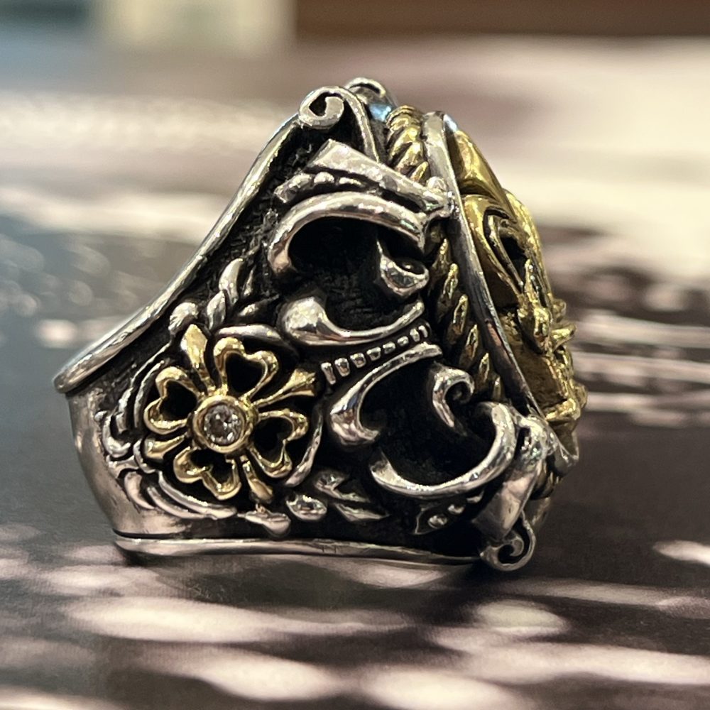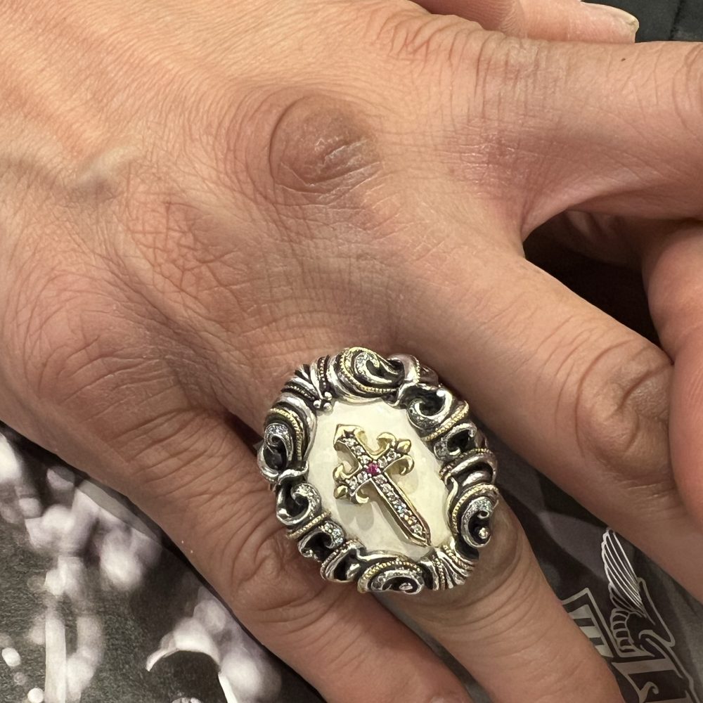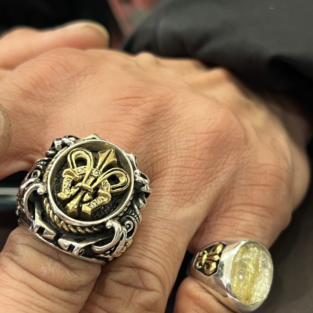 デニスさんに奉納するという志の元に作成されたこのリングはサイドのレザーインレイもスモールのポリチーノクロスになっています💐